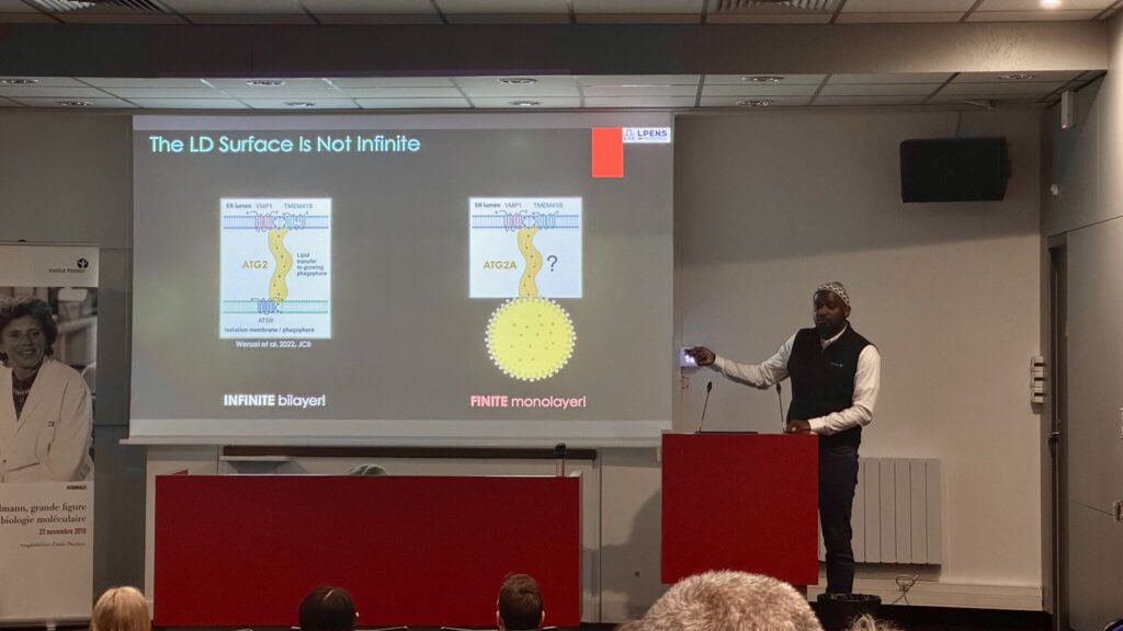 Au cœur de ses investigations, Abdou Rachid Thiam s’intéresse aux gouttelettes lipidiques, de minuscules organites cellulaires qui jouent un rôle clé dans la gestion énergétique. Grâce à des outils empruntés à la physique, microfluidique, mesures de haute précision, et à la biologie cellulaire avancée, son équipe montre comment ces gouttelettes se forment, se déplacent, communiquent avec d’autres organites et influencent le métabolisme global de la cellule.
