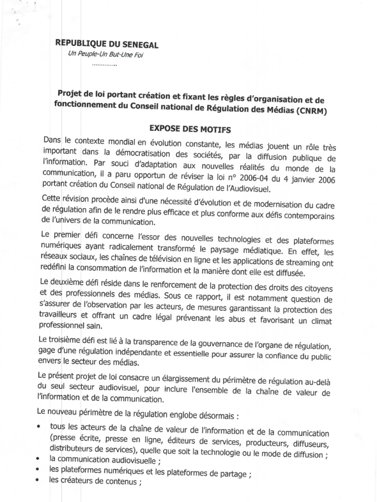 Présenté par le ministre de la Communication, des Télécommunications et du Numérique, Alioune Sall, le texte acte la fin programmée du Conseil national de régulation de l’audiovisuel (CNRA), dont le périmètre était jusque-là essentiellement limité à la radio et à la télévision. La future autorité ambitionne d’instaurer une régulation transversale, fondée non plus sur les supports de diffusion mais sur les contenus.