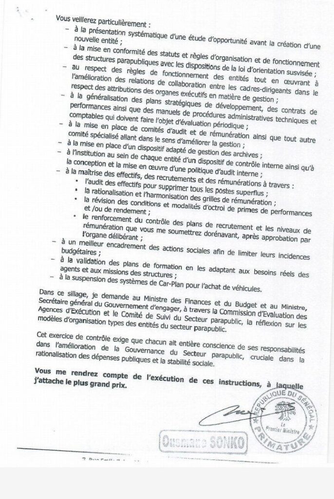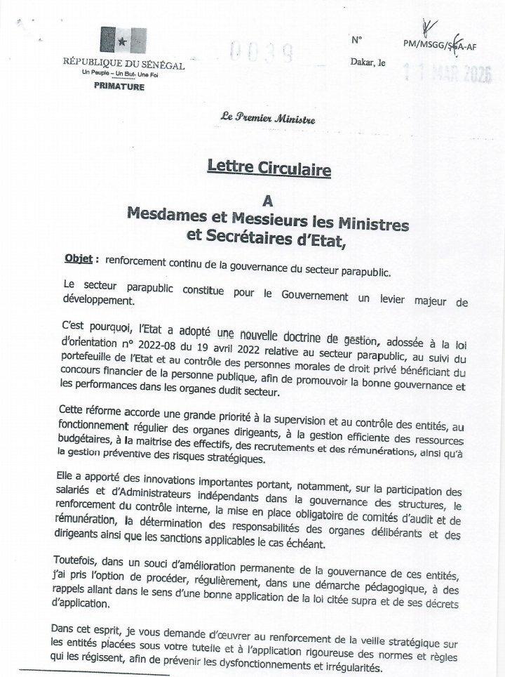 Par cette circulaire, le chef du gouvernement fixe une ligne claire : celle d’un État plus exigeant, orienté vers la performance, la transparence et la redevabilité. Un cap qui marque une nouvelle étape dans la réforme du secteur parapublic sénégalais.