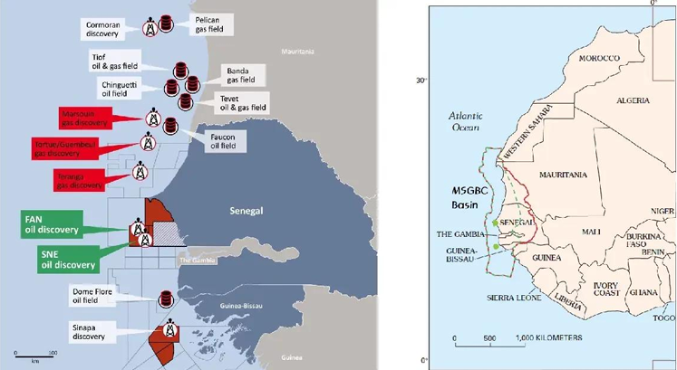 Les découvertes de GTA (à la frontière du Sénégal et de la Mauritanie dVGl 15 Tef de gaz récupérable), de Sangomar et Yakaar-Teranga (au Sénégal avec 630 millions de barils de pétrole et environ 25 Tcf de gaz) et de BirAllah (en Mauritanie entre 100 et 138 Tcf de réserves de gaz naturel récupérable) ont révélé que le bassin MSGBC : est un nouveau pôle énergétique mondial, dispose d’un potentiel gazier exceptionnel, possède des réserves pétrolières significatives, et reste loin d’avoir livré tout son potentiel.