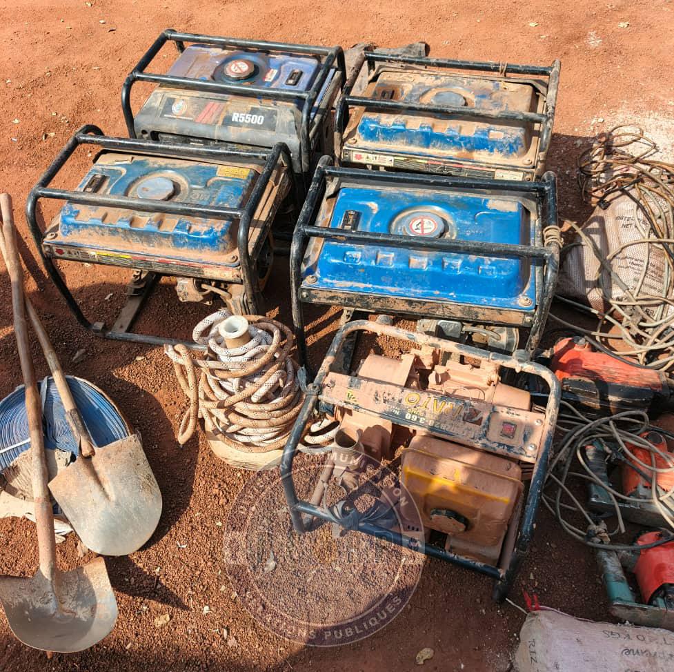 Au terme de l’opération, les forces engagées ont procédé à la destruction sur place de quarante-cinq (45) machines cracheuses, utilisées pour l’extraction illégale de l’or. Plusieurs équipements ont également été saisis, notamment cinq bidons de gasoil, représentant un volume total de 100 litres, une motopompe, trois marteaux piqueurs, quatre groupes électrogènes ainsi qu’un poste à souder.