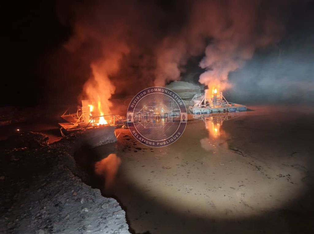 Le bilan fait état de treize (13) dragues et de deux (02) groupes électrogènes mis hors d’état de fonctionnement. Ces équipements servaient à l’extraction illégale de ressources minières dans la zone.